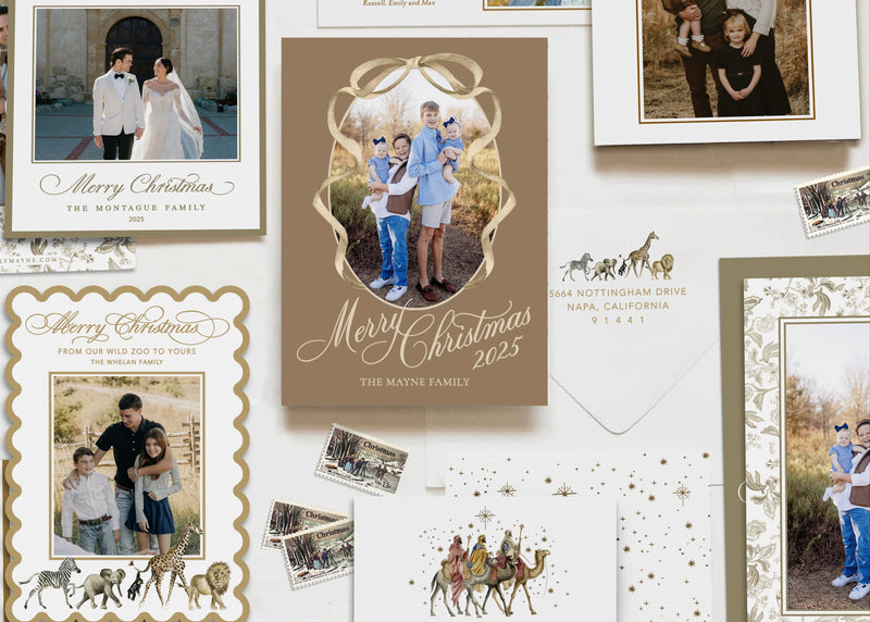 This year's Christmas Card designs begins with hand-painted artistry, with both classic and festive details and style, resulting in paper goods that feel distinctive, timeless, and charming. As always, the paper is luxurious, the process is personal, and the outcome is a beautifully crafted keepsake that commemorates life's special moments. Browse our designs and spread the joy of the holiday season with our 2025 Christmas Collection.