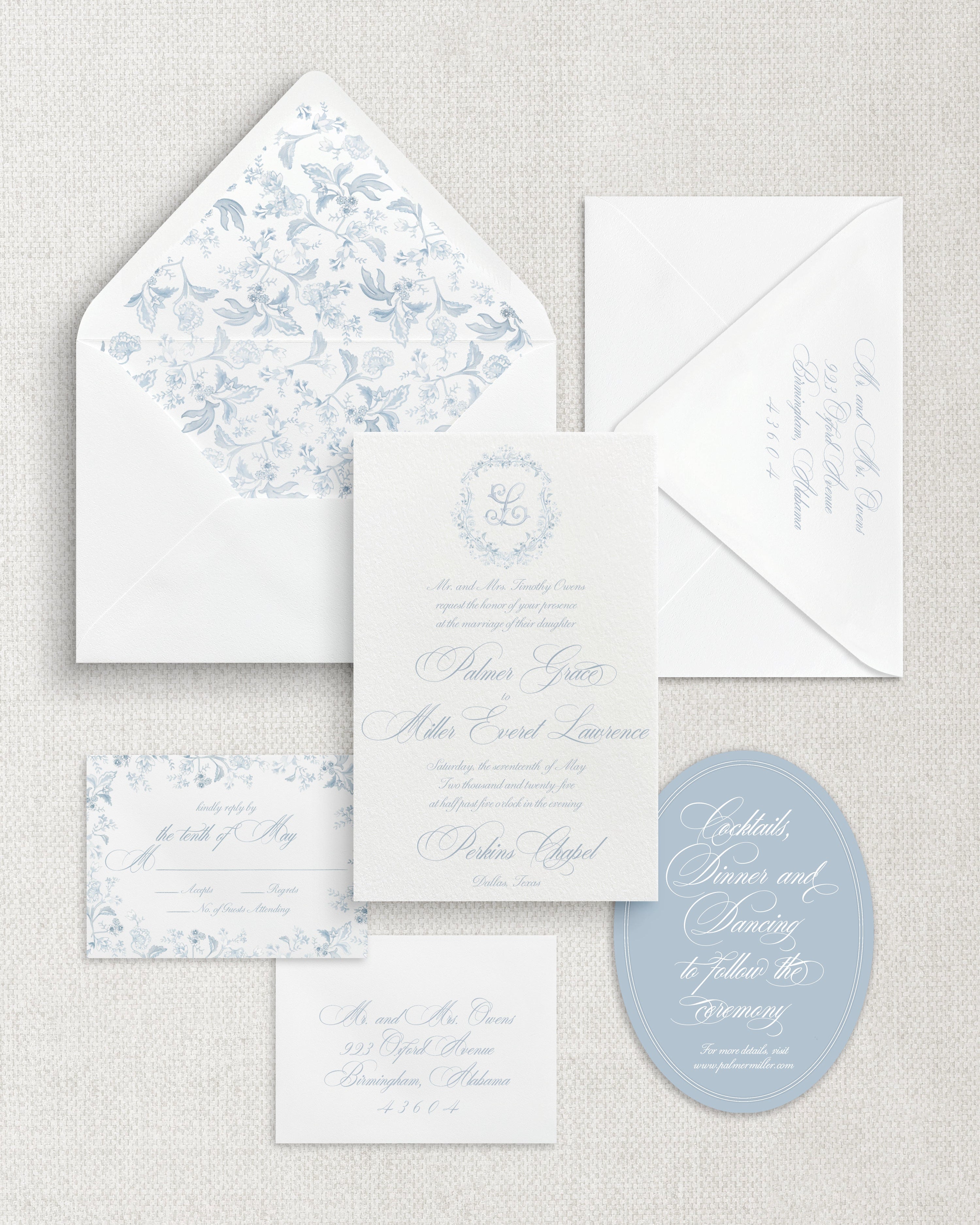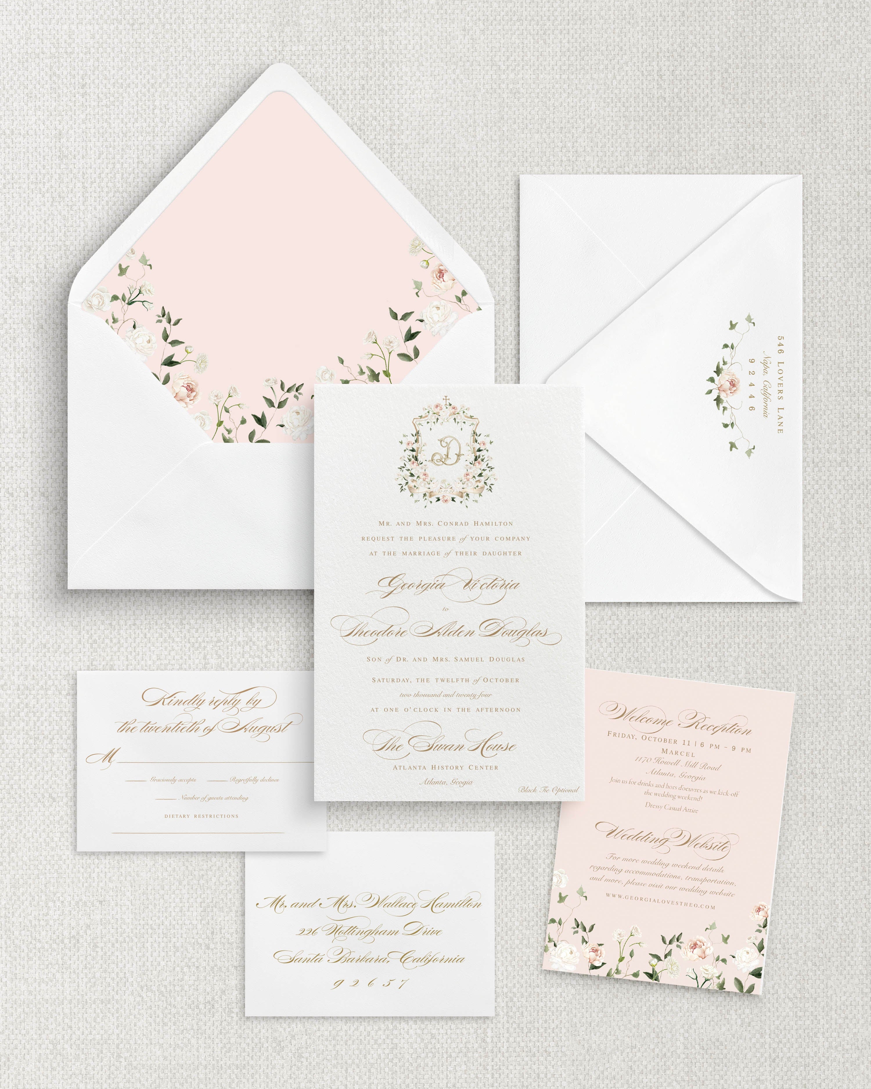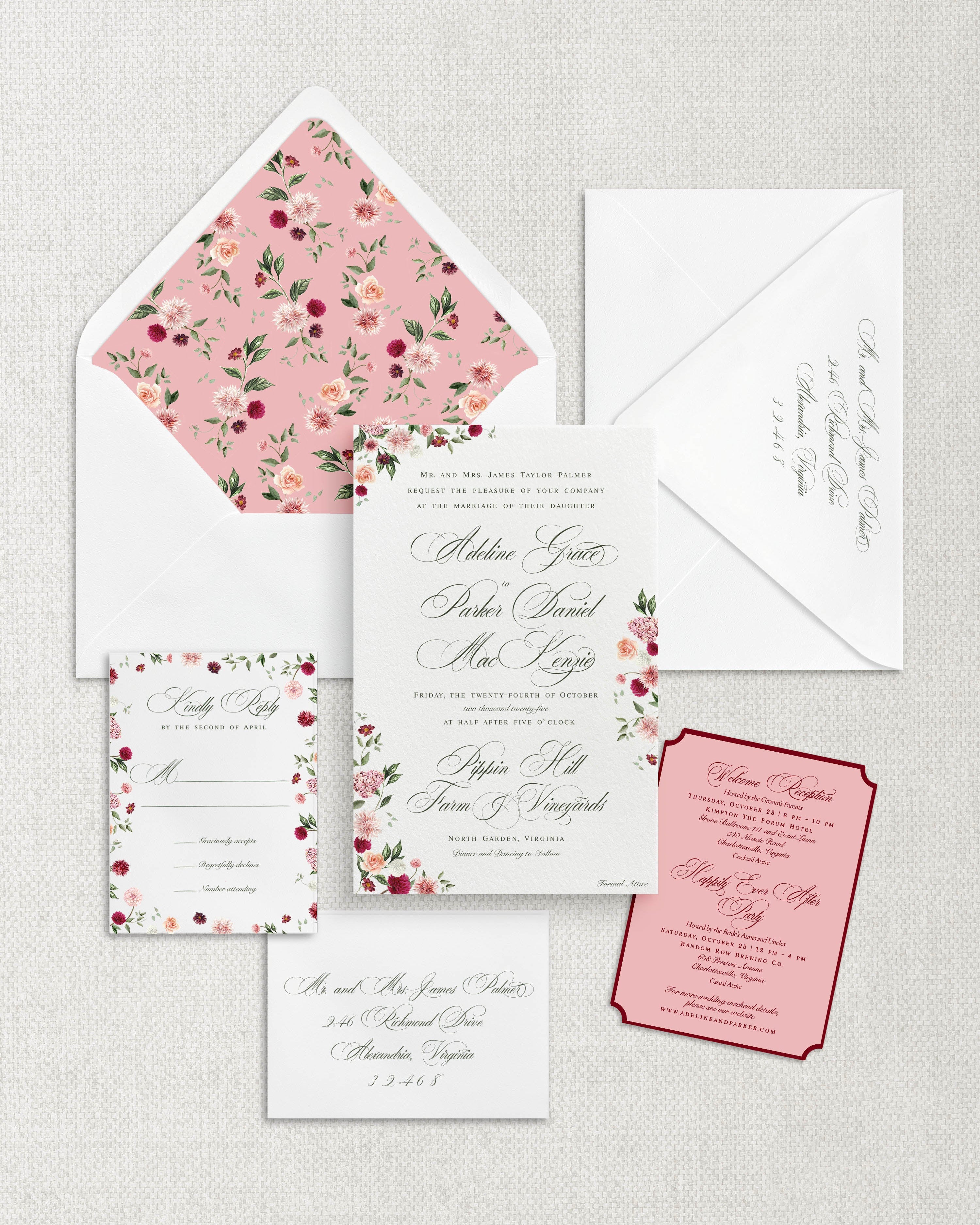 Quantities can be adjusted upon request. Additional items such as Save the Dates, invitation enhancements, and wedding day-of paper goods are priced à la carte.