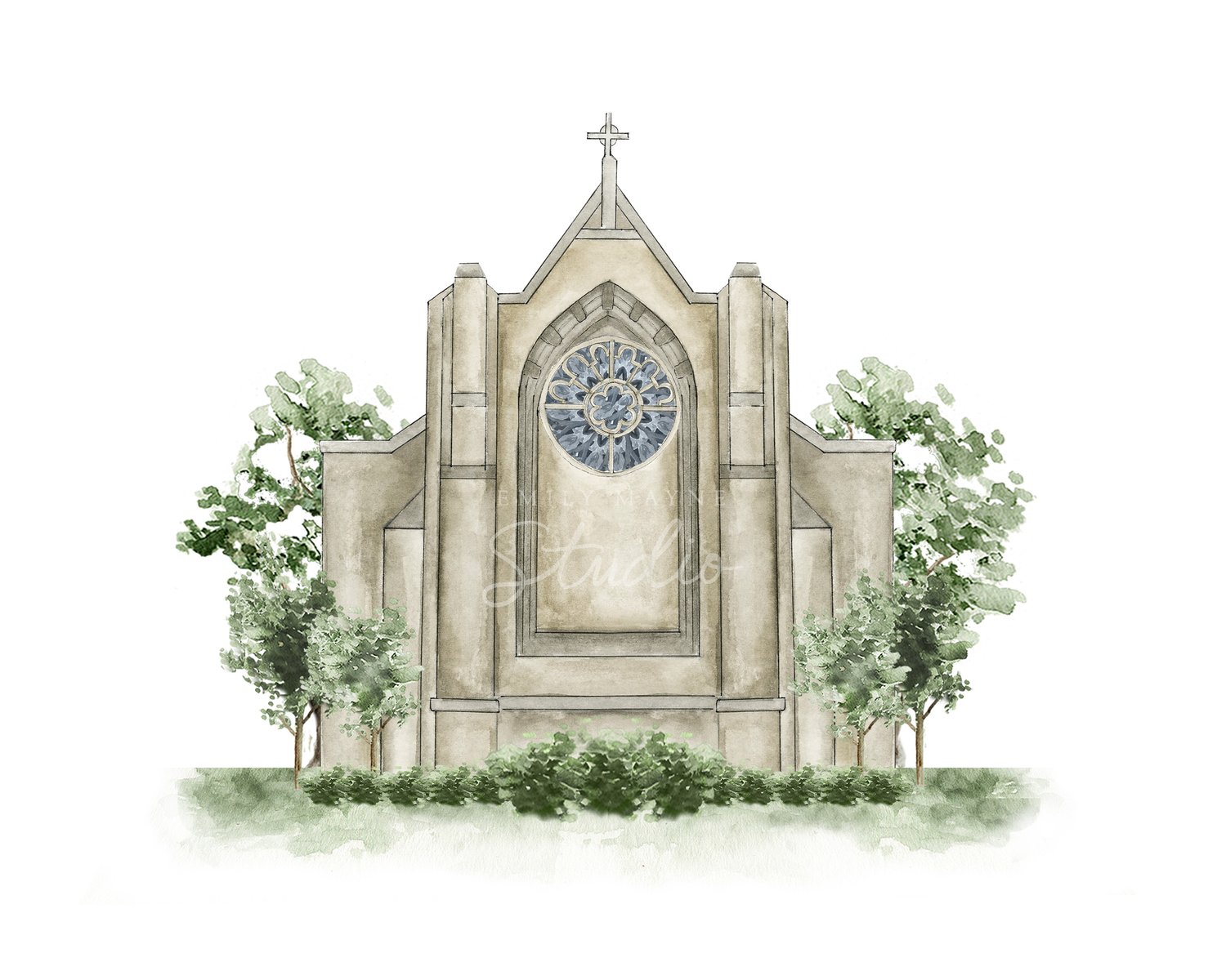 Commemorate your wedding with a hand-painted watercolor rendering of your venue by Emily Mayne. Choose from our library and keepsake or gift it as a large scale print, or even download it as a digital file to use for your own wedding paper good needs.