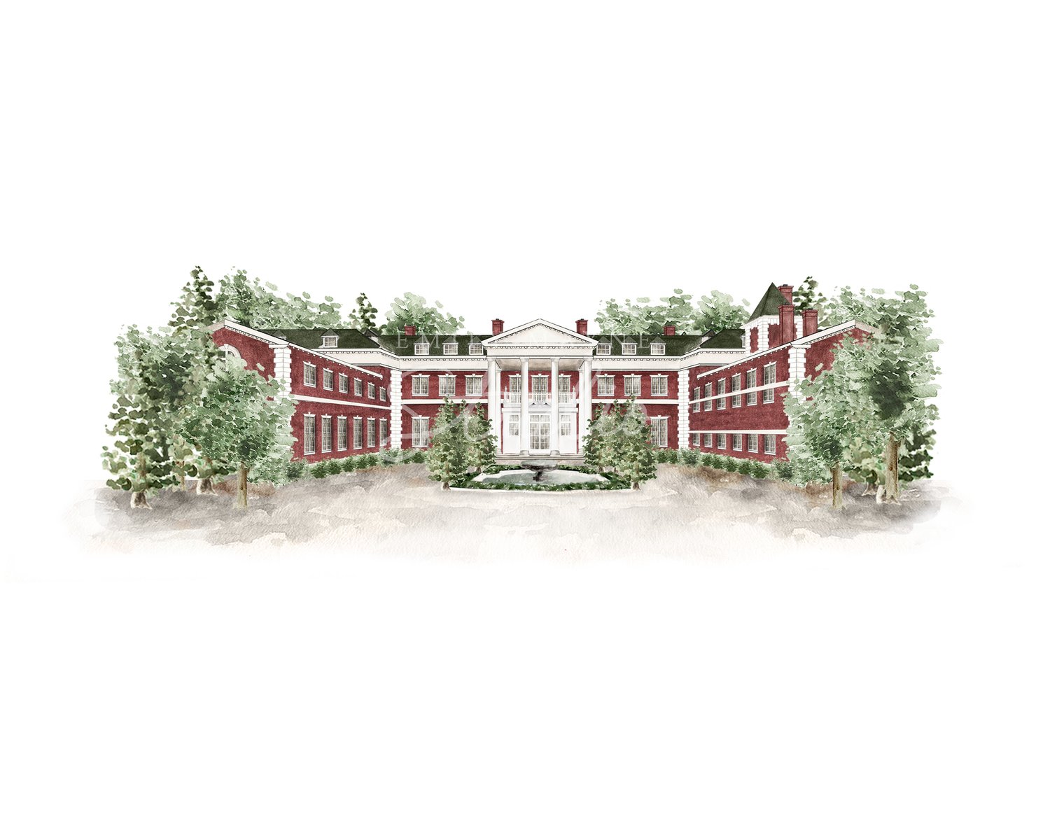 Commemorate your wedding with a hand-painted watercolor rendering of your venue by Emily Mayne. Choose from our library and keepsake or gift it as a large scale print, or even download it as a digital file to use for your own wedding paper good needs.