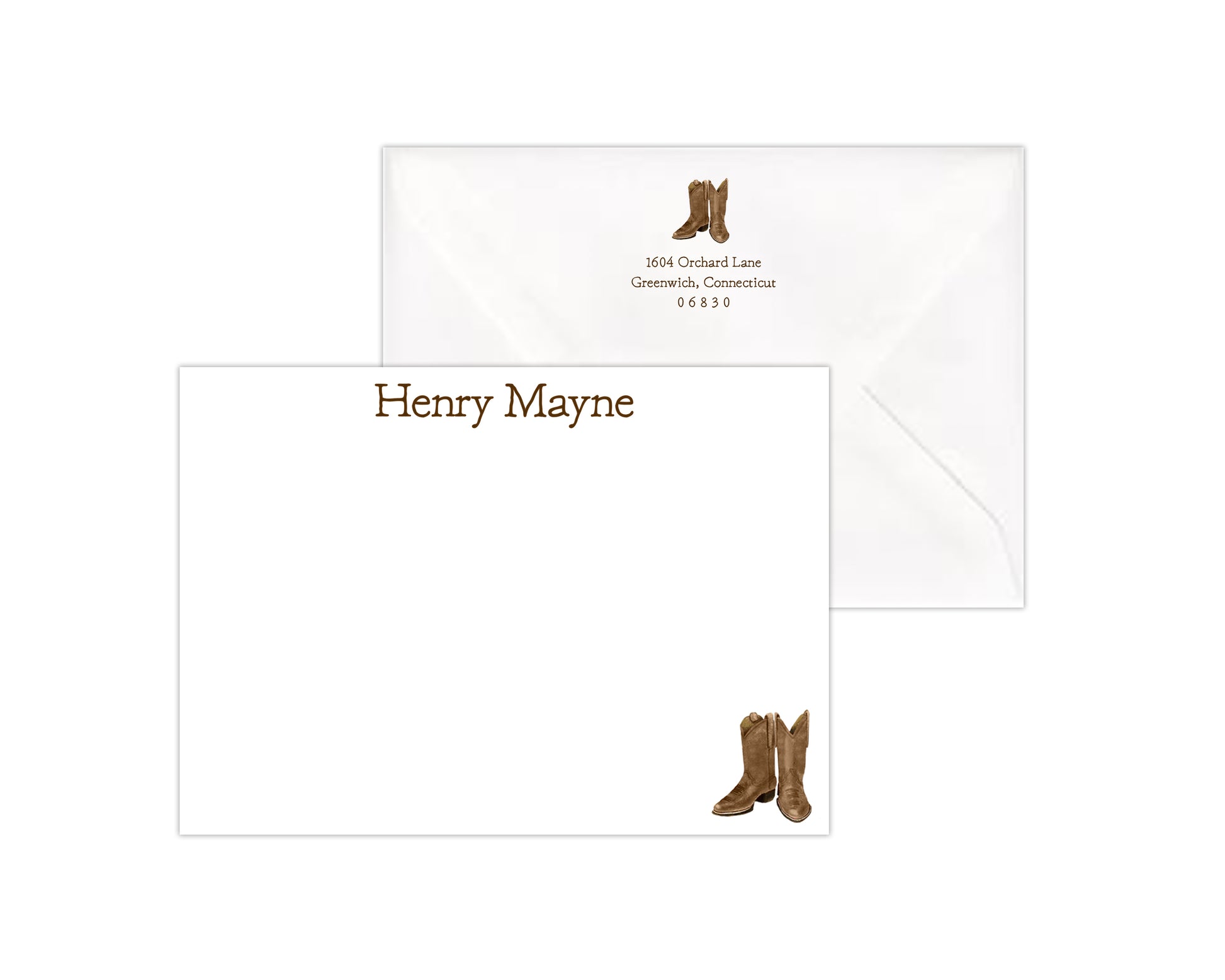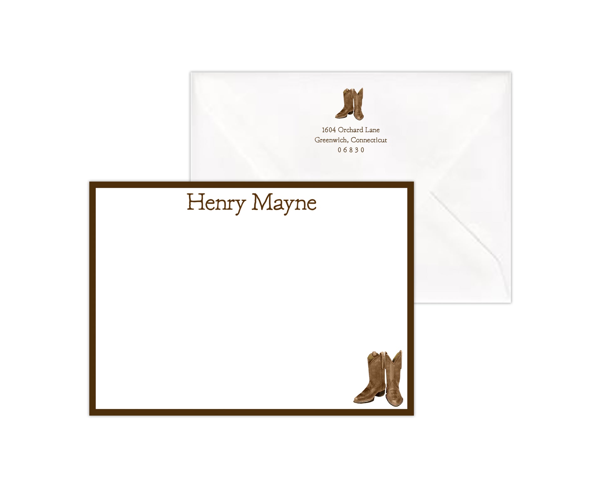 Featuring hand-painted brown boots, these personalized children’s A6 flat notes with coordinating envelopes are perfect for thank you notes, memos to teachers and more.