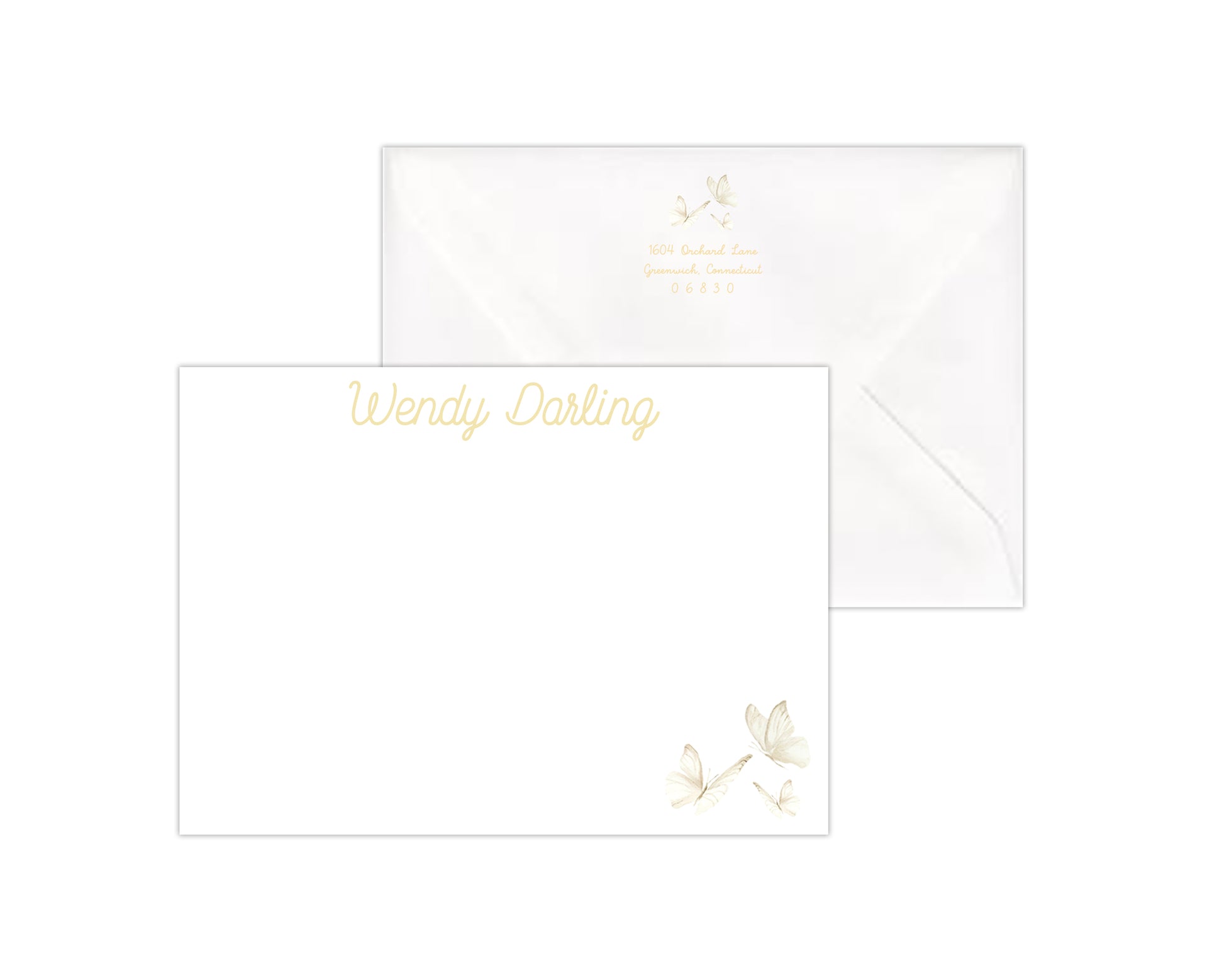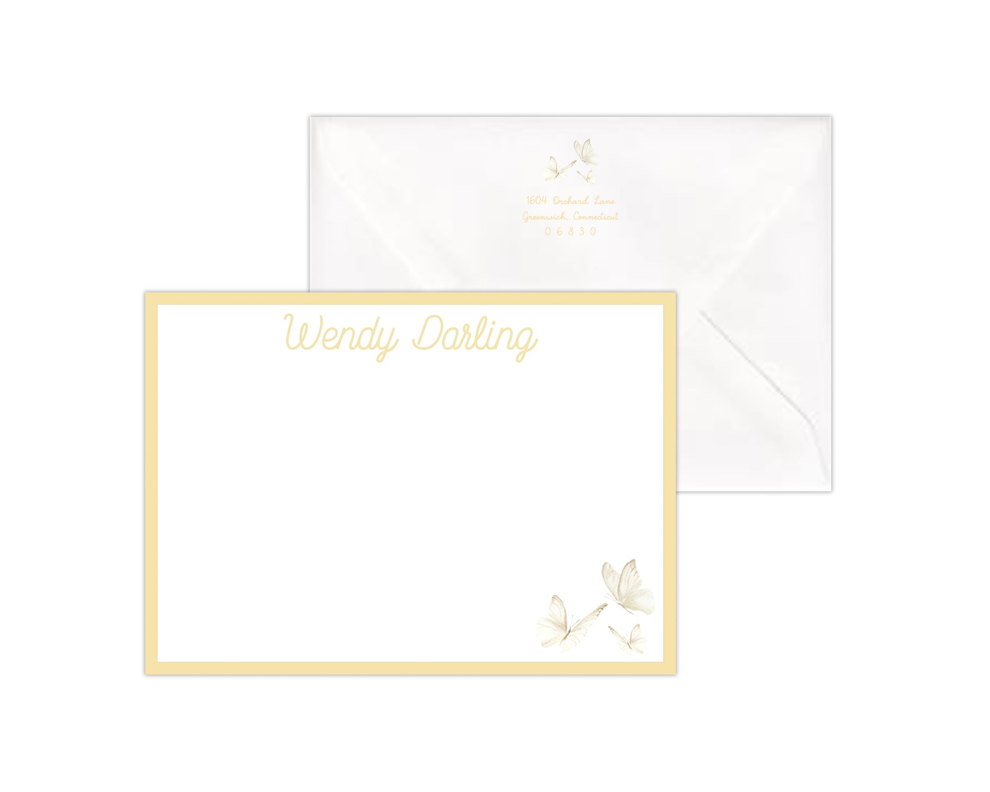 Featuring hand-painted butterflies, these personalized children’s A6 flat notes with coordinating envelopes are perfect for thank you notes, memos to teachers and more.