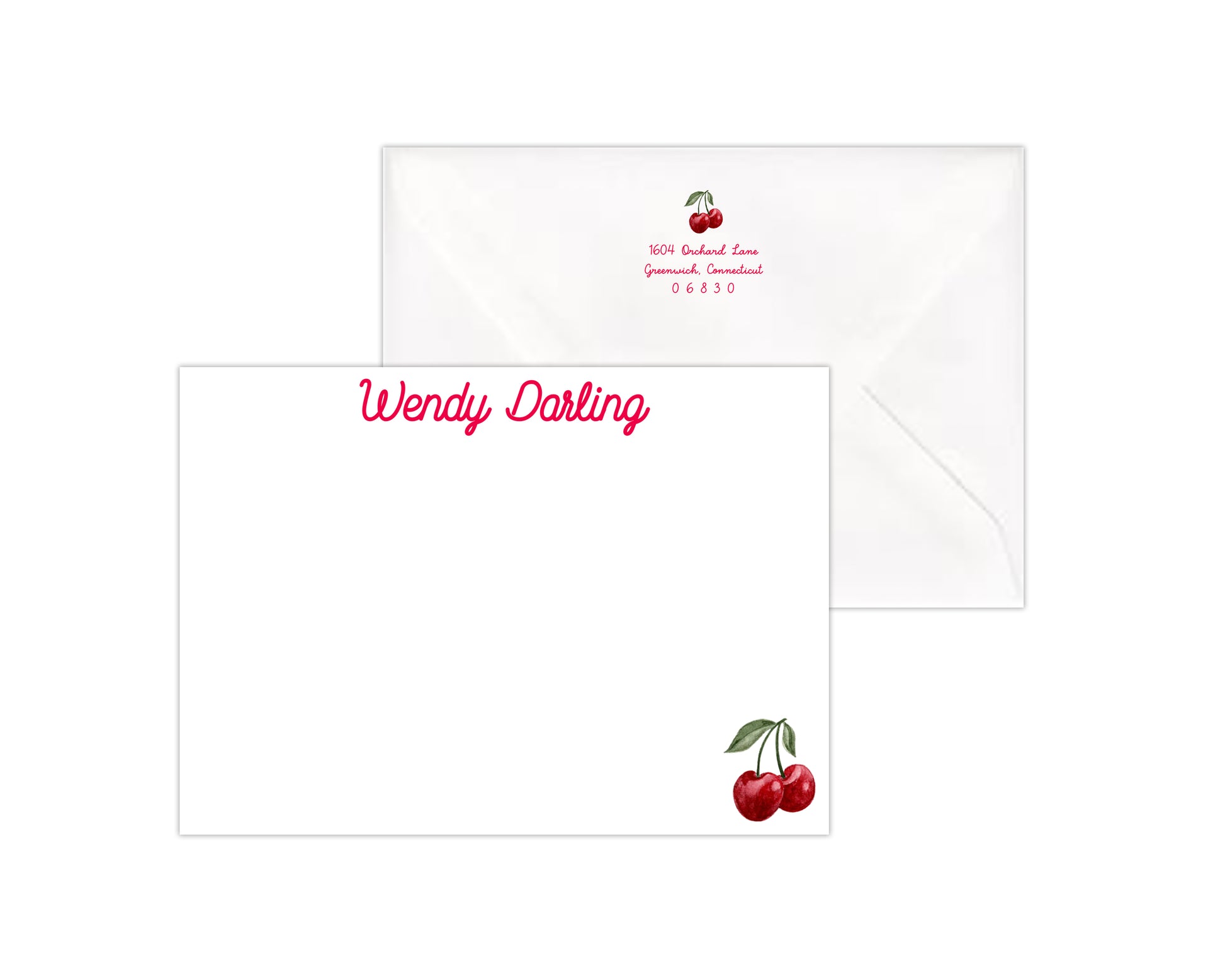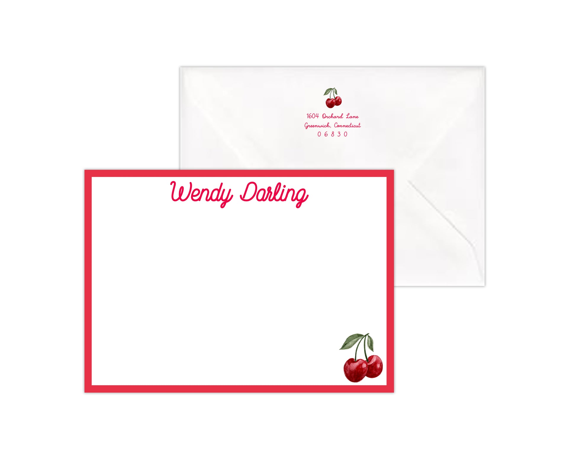 Featuring hand-painted cherries, these personalized children’s A6 flat notes with coordinating envelopes are perfect for thank you notes, memos to teachers and more.