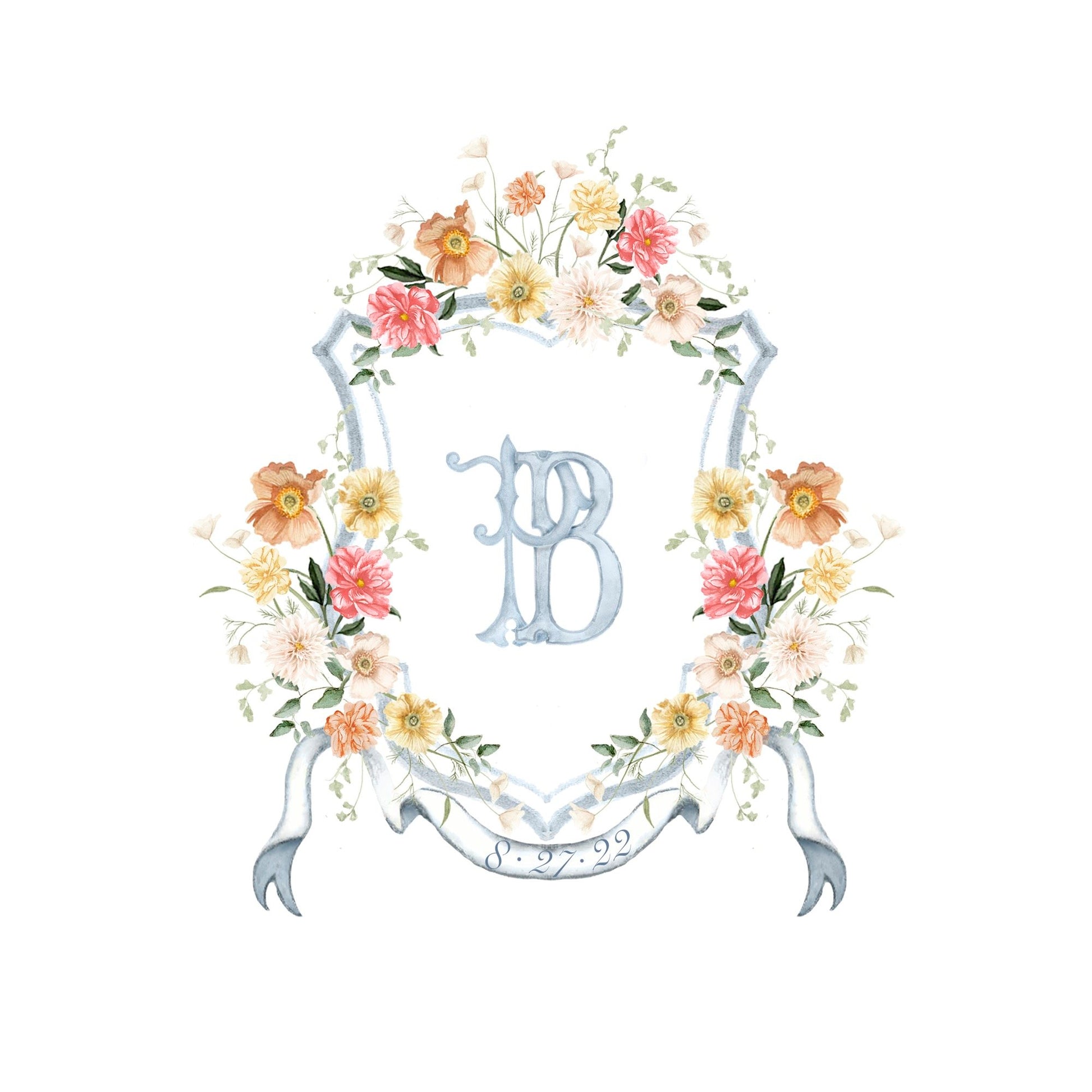 A romantic keepsake for your wedding day and beyond, our custom crests bring storybook charm to all your paper goods. Each design is lovingly illustrated by hand, then semi-customized with your chosen letter(s) and wedding date, elegantly nestled into the scroll. You’ll receive high-resolution digital files ready to use across your suite, from invitations and menus to welcome signage and cocktail napkins.
