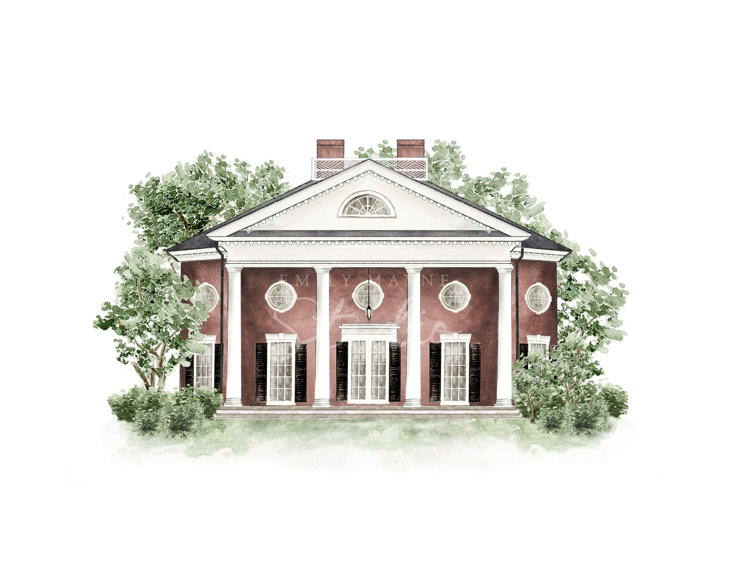 Commemorate your wedding with a hand-painted watercolor rendering of your venue by Emily Mayne. Choose from our library and keepsake or gift it as a large scale print, or even download it as a digital file to use for your own wedding paper good needs.