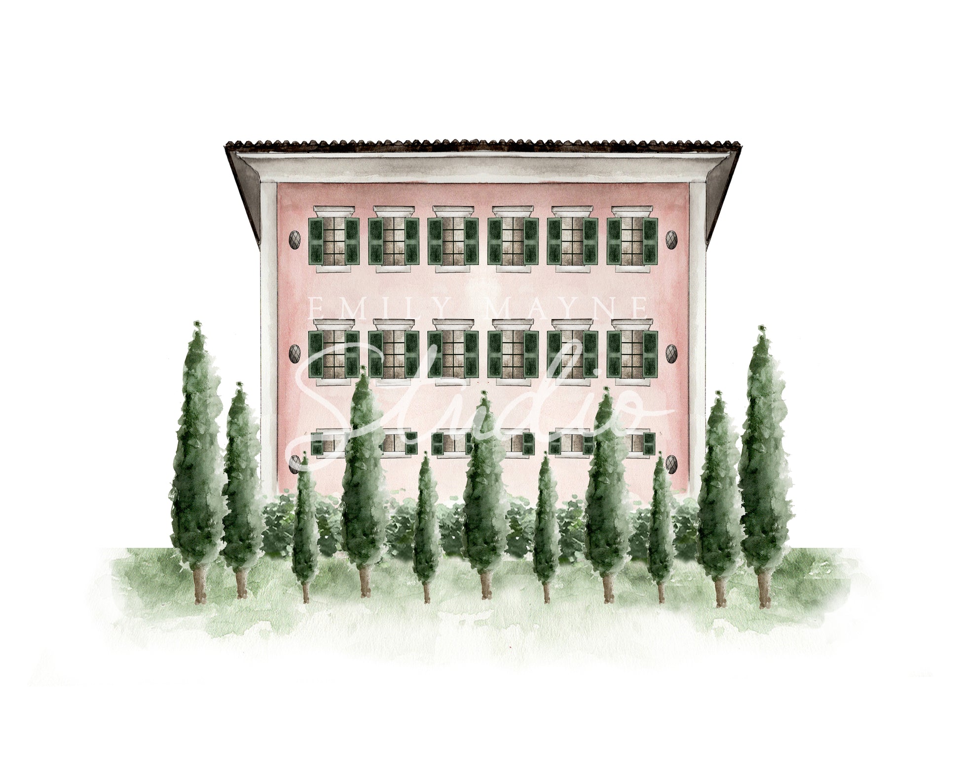 Commemorate your wedding with a hand-painted watercolor rendering of your venue by Emily Mayne. Choose from our library and keepsake or gift it as a large scale print, or even download it as a digital file to use for your own wedding paper good needs.