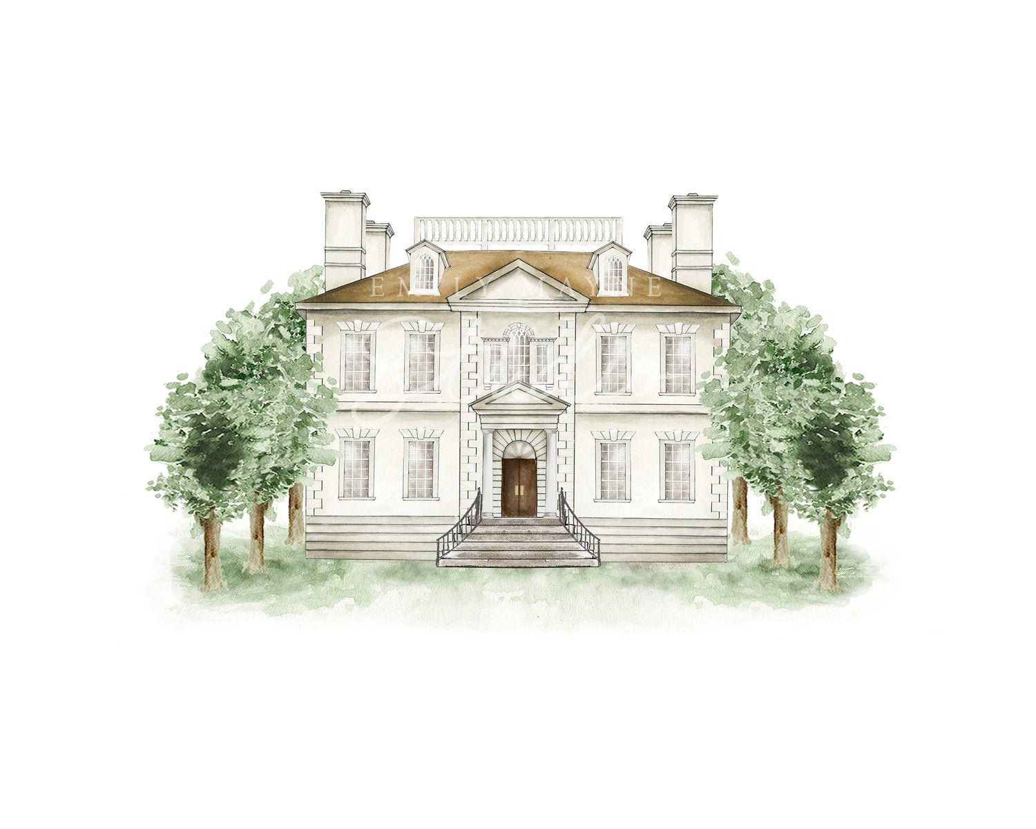 Commemorate your wedding with a hand-painted watercolor rendering of your venue by Emily Mayne. Choose from our library and keepsake or gift it as a large scale print, or even download it as a digital file to use for your own wedding paper good needs.