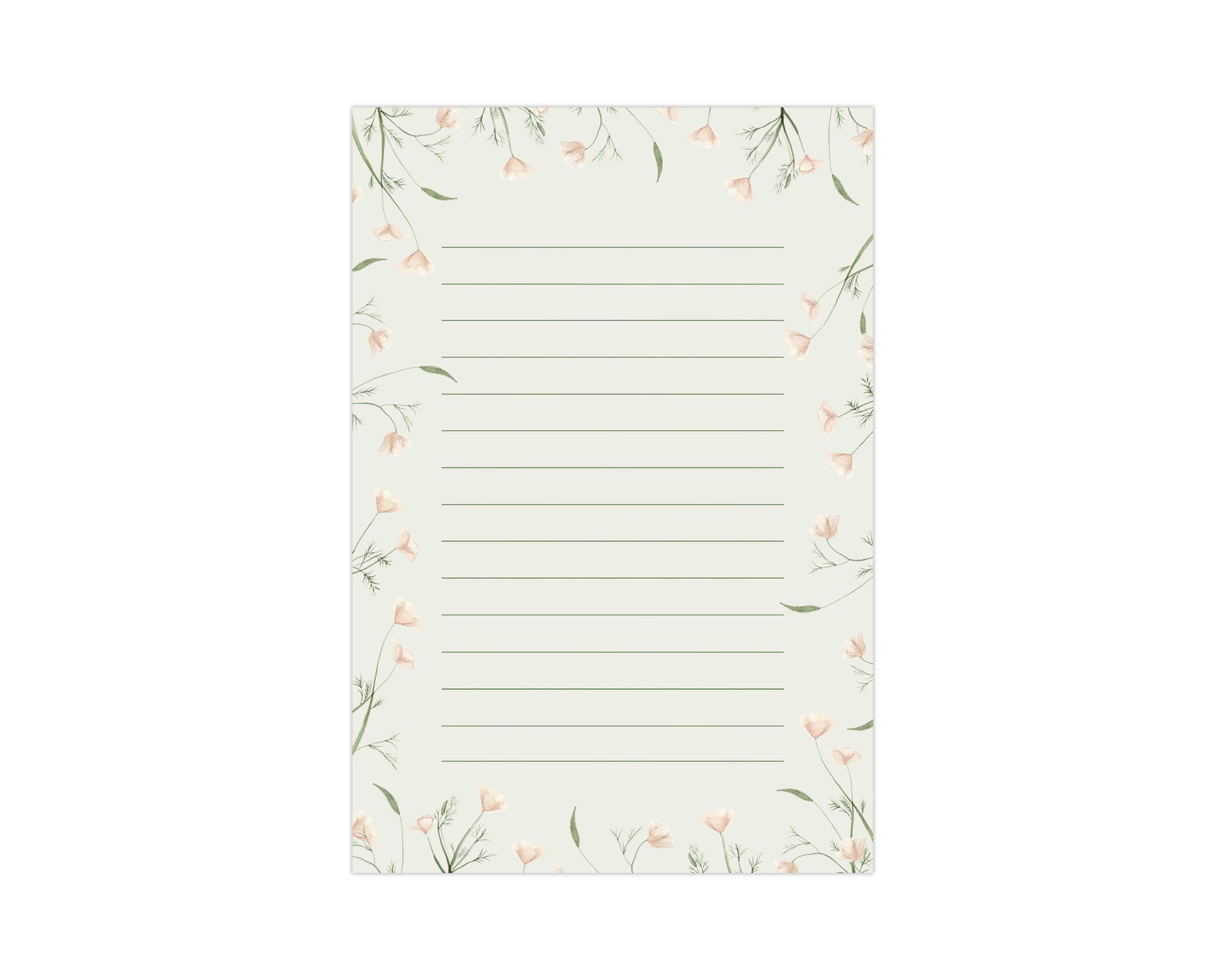 A little notepad made for lovely thoughts. Featuring Emily Mayne Studio’s hand-painted flower illustrations, this 4.5 × 6.25" pad is printed on soft 70 lb. cotton paper with 50 sheets—perfect for to-dos, daydreams, and sweet notes alike.