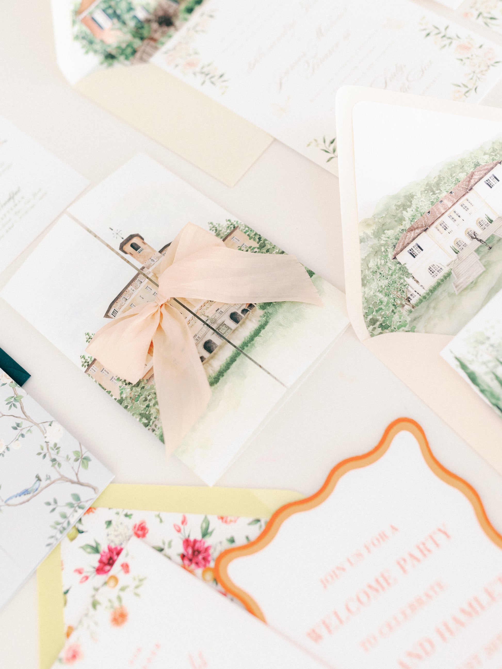 Our Sample Box is designed to give you a tangible look and feel of the materials, printing methods, and thoughtful details we offer. Inside, you’ll find a curated assortment of stationery samples that reflect the craftsmanship and artistry behind our invitation suites.