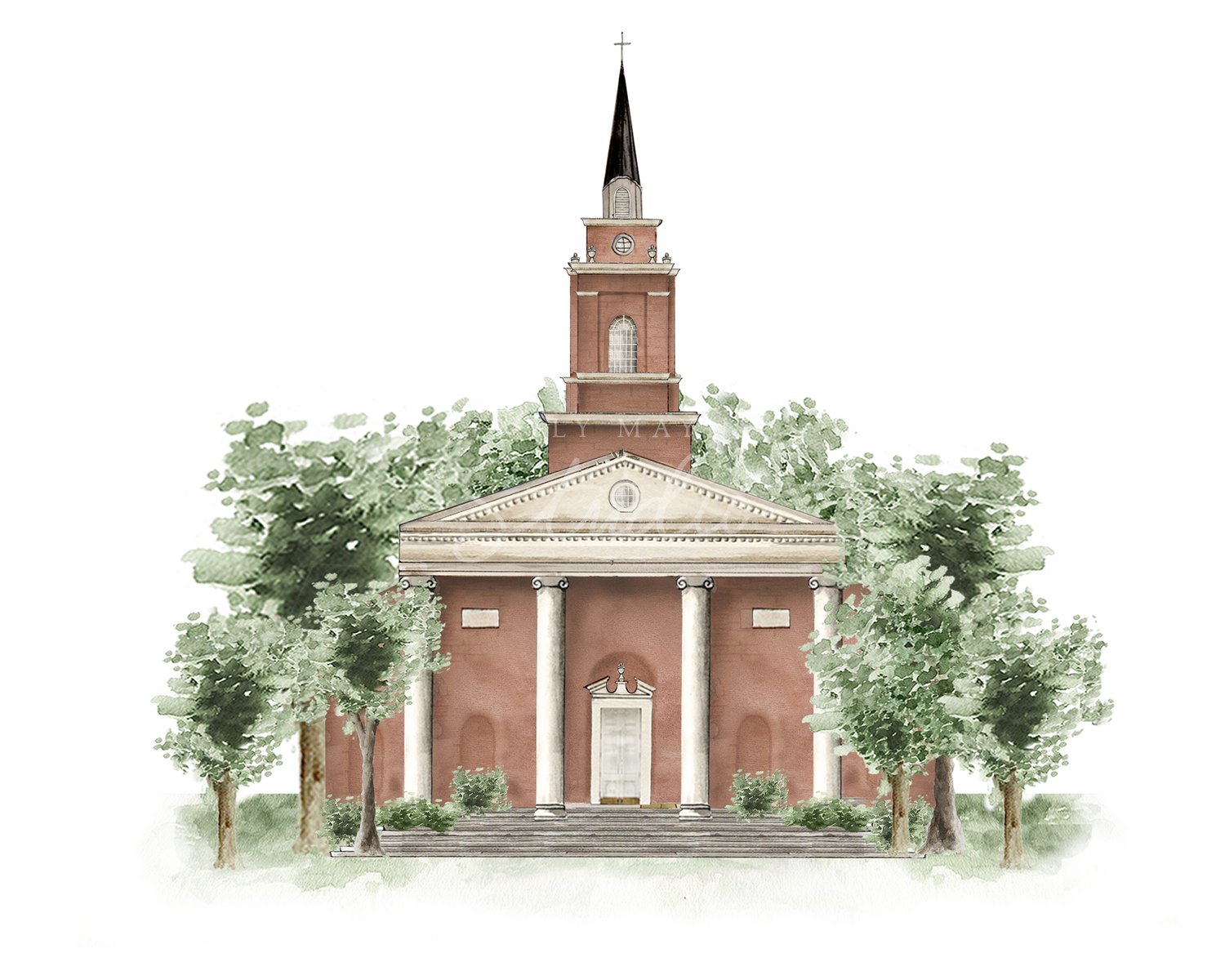 Commemorate your wedding with a hand-painted watercolor rendering of your venue by Emily Mayne. Choose from our library and keepsake or gift it as a large scale print, or even download it as a digital file to use for your own wedding paper good needs.