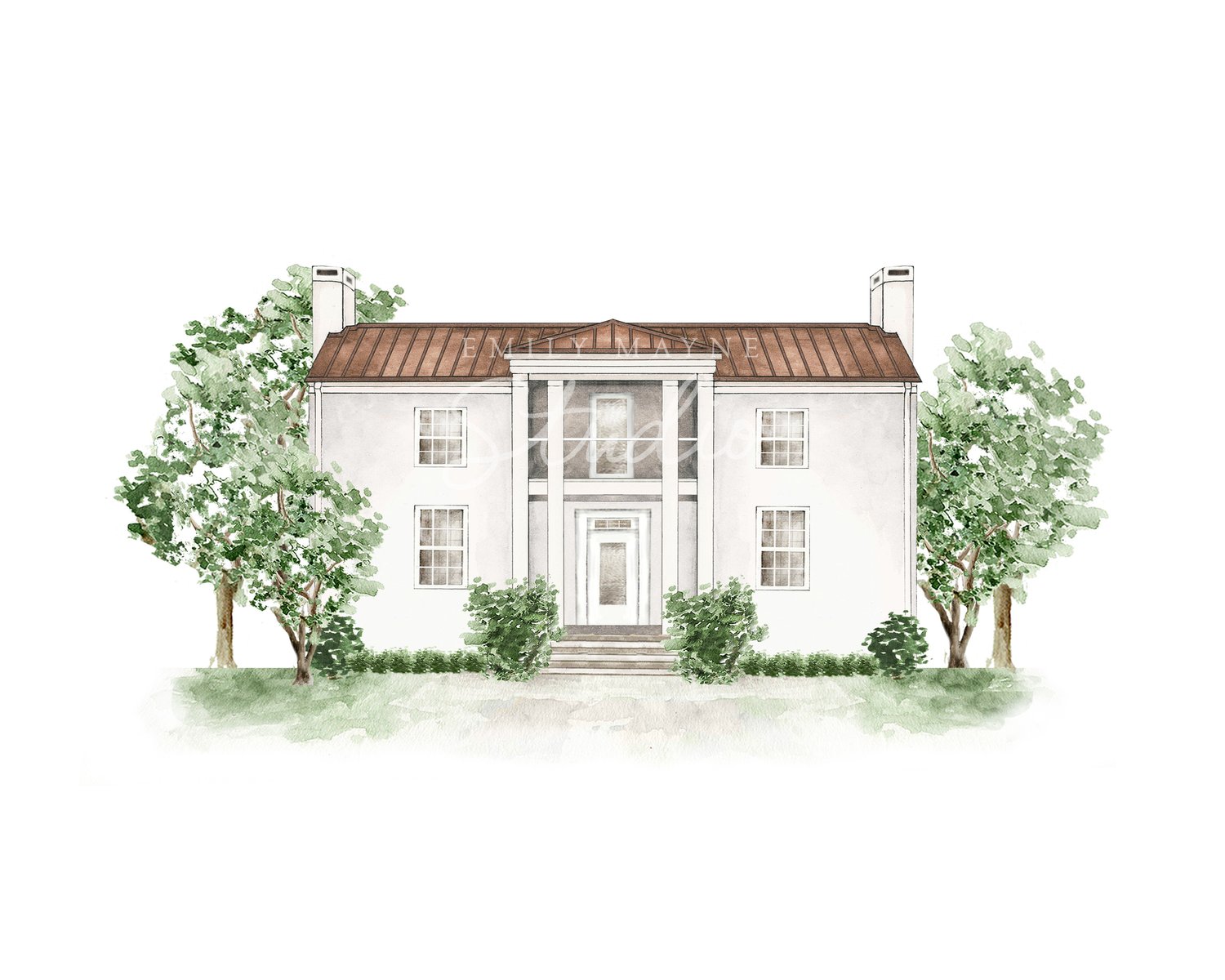 Commemorate your wedding with a hand-painted watercolor rendering of your venue by Emily Mayne. Choose from our library and keepsake or gift it as a large scale print, or even download it as a digital file to use for your own wedding paper good needs.