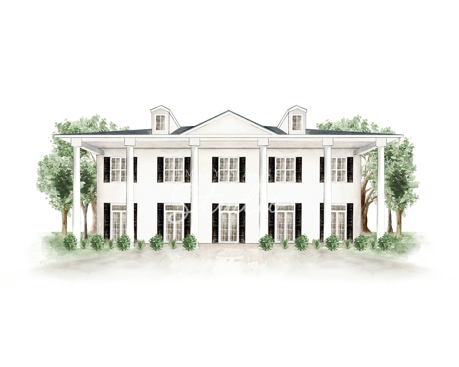Commemorate your wedding with a hand-painted watercolor rendering of your venue by Emily Mayne. Choose from our library and keepsake or gift it as a large scale print, or even download it as a digital file to use for your own wedding paper good needs.