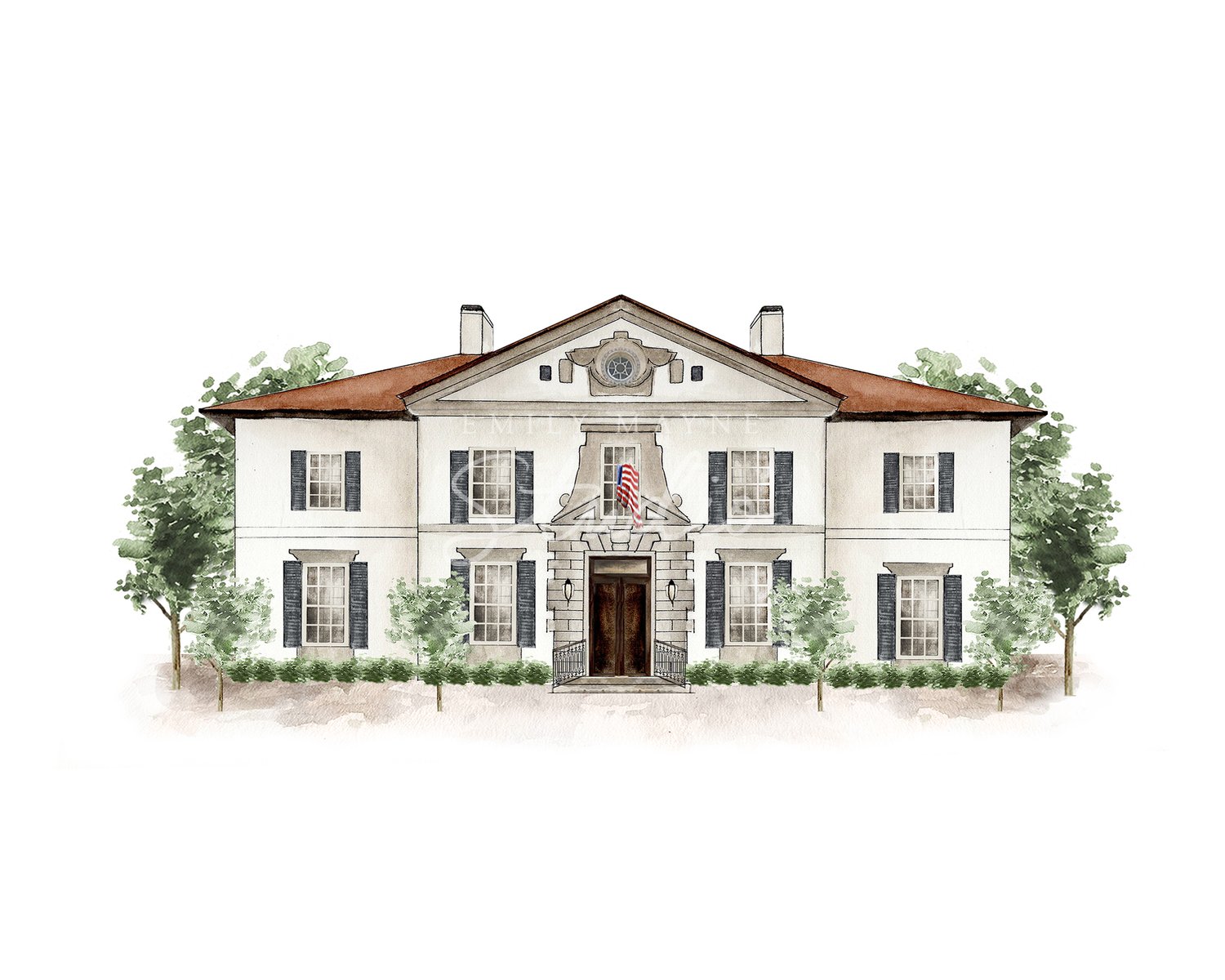 Commemorate your wedding with a hand-painted watercolor rendering of your venue by Emily Mayne. Choose from our library and keepsake or gift it as a large scale print, or even download it as a digital file to use for your own wedding paper good needs.