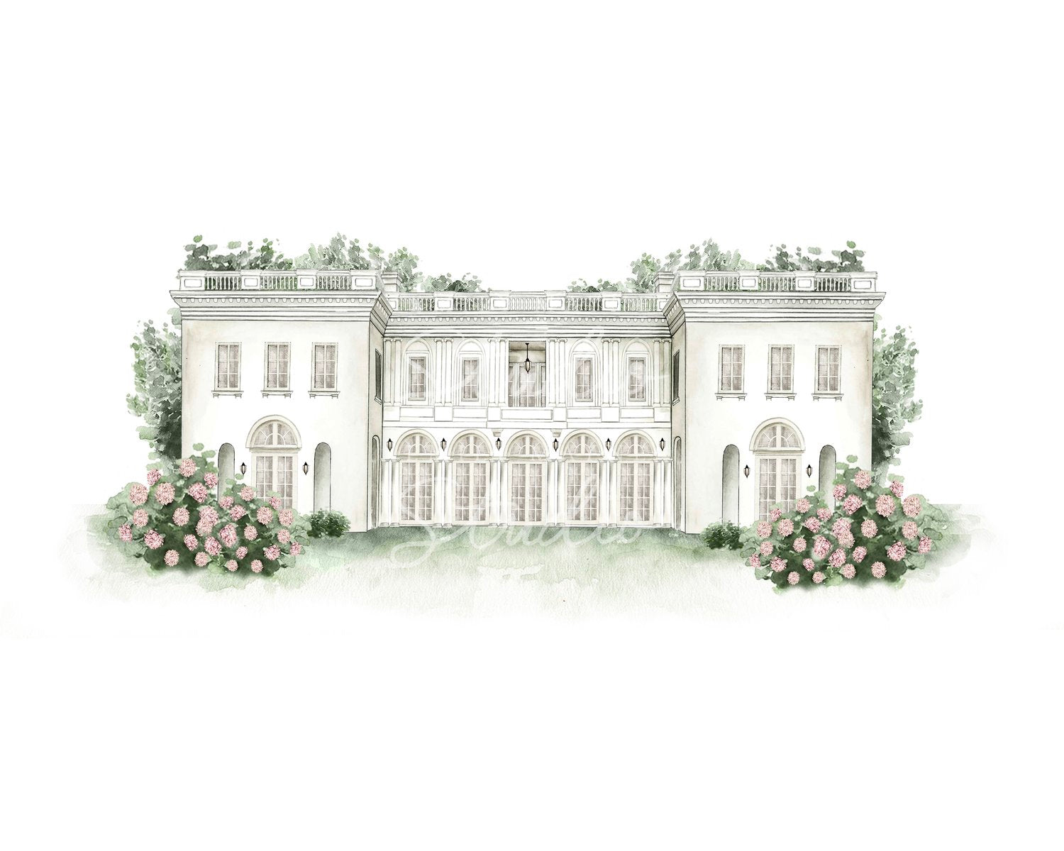 Commemorate your wedding with a hand-painted watercolor rendering of your venue by Emily Mayne. Choose from our library and keepsake or gift it as a large scale print, or even download it as a digital file to use for your own wedding paper good needs.