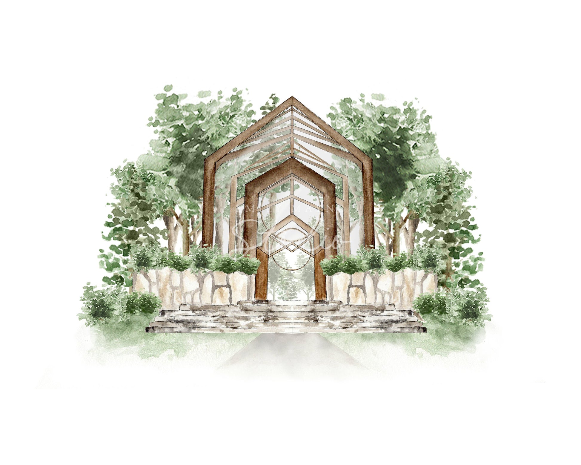 Commemorate your wedding with a hand-painted watercolor rendering of your venue by Emily Mayne. Choose from our library and keepsake or gift it as a large scale print, or even download it as a digital file to use for your own wedding paper good needs.