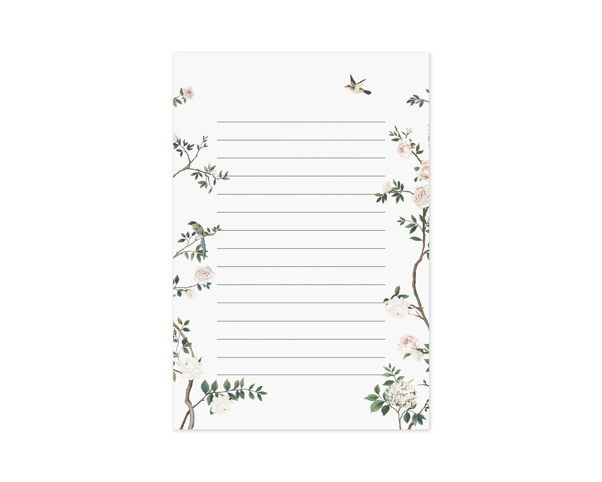 A little notepad made for lovely thoughts. Featuring Emily Mayne Studio’s hand-painted chinoiserie design, this 4.5 × 6.25" pad is printed on soft 70 lb. cotton paper with 50 sheets—perfect for to-dos, daydreams, and sweet notes alike.