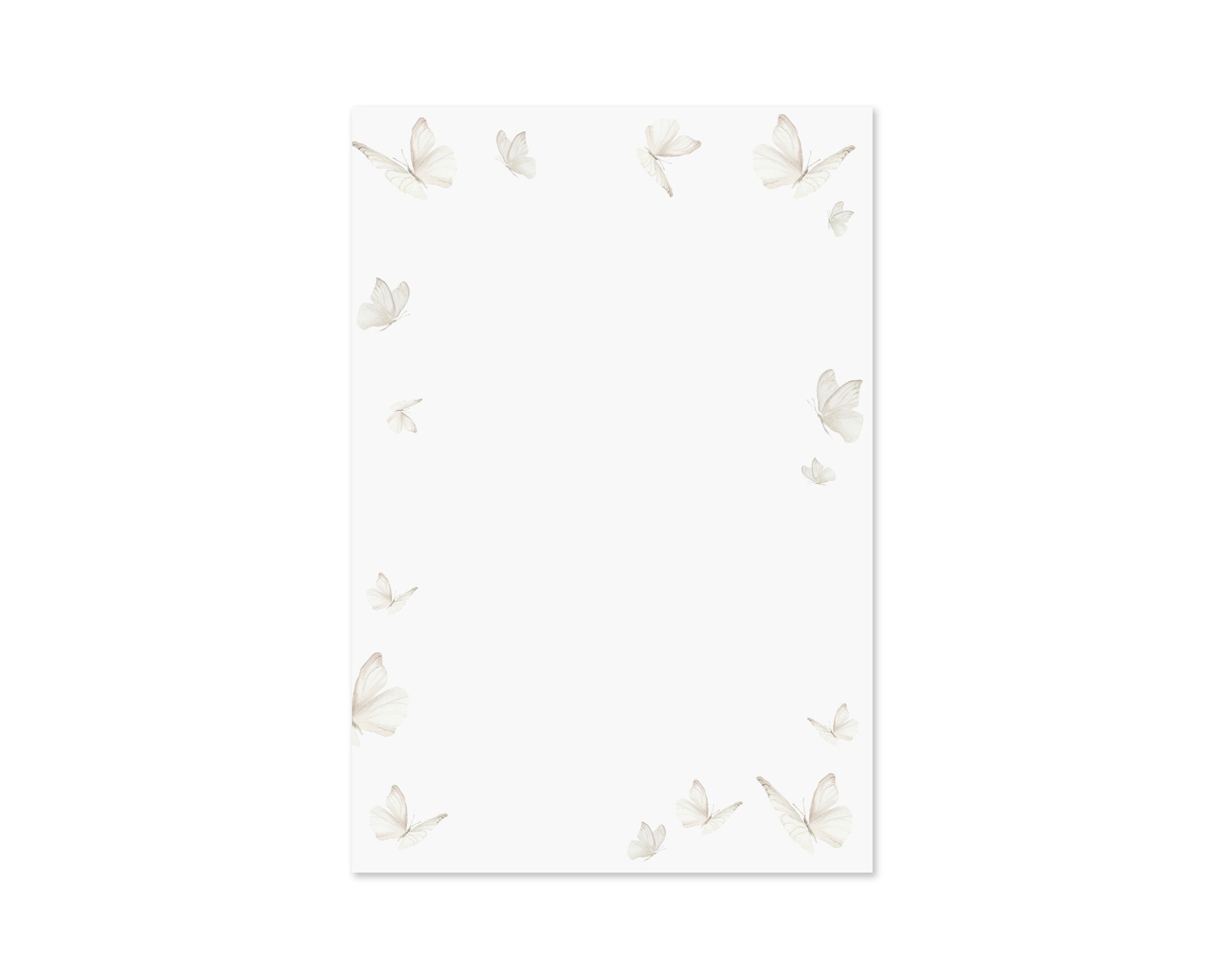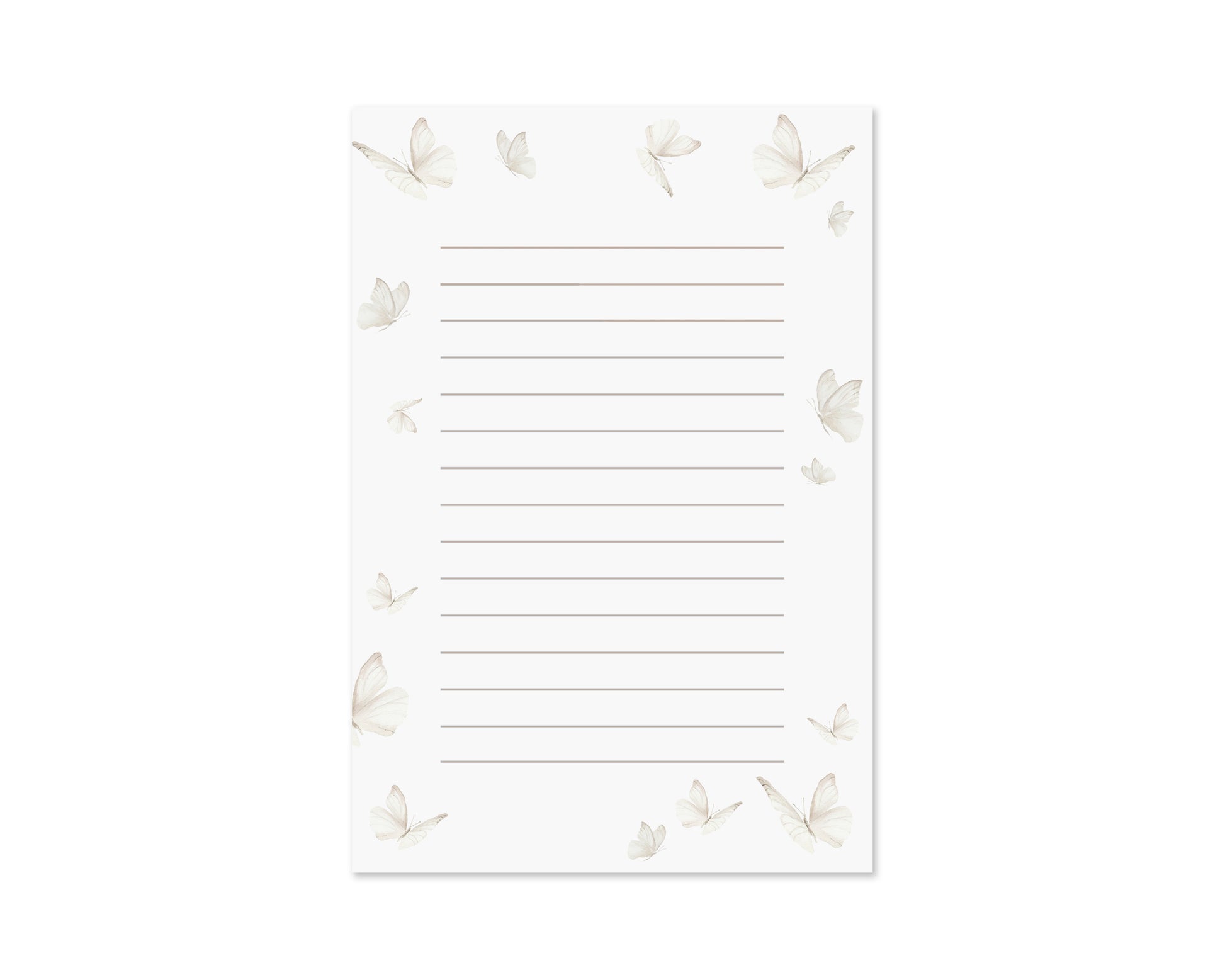 A little notepad made for lovely thoughts. Featuring Emily Mayne Studio’s hand-painted butterfly illustration, this 4.5 × 6.25" pad is printed on soft 70 lb. cotton paper with 50 sheets—perfect for to-dos, daydreams, and sweet notes alike.